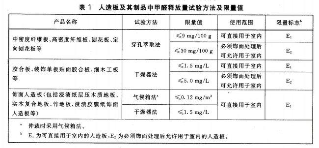 強(qiáng)制標(biāo)準(zhǔn)GB18580-2001里的甲醛釋放量及限量值規(guī)定