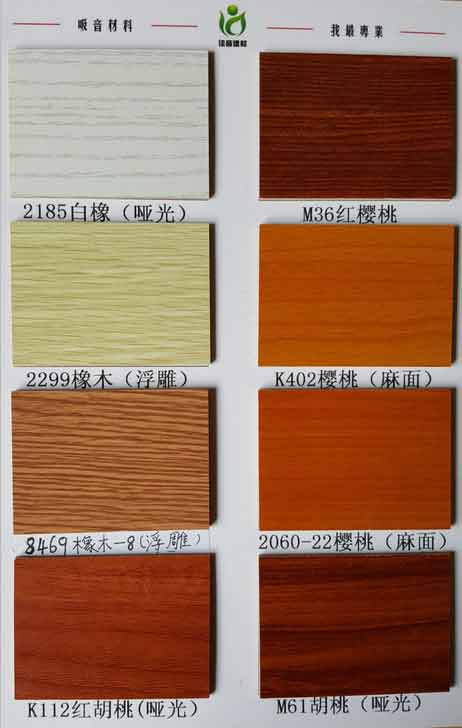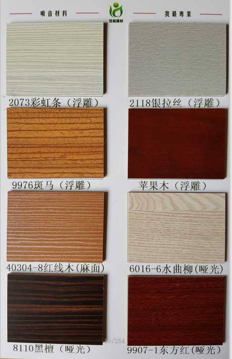 深圳佳音木質(zhì)吸音板基材: 采用高密度板,厚度為15mm或18mm,也可根據(jù)客戶要求使用其它MDF板材。